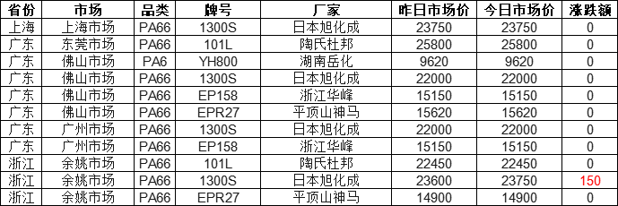 According to Zhuangsu Shijie statistics, as of 11:00 AM on September 30, the PA market across the country is steadily rising! 91% of the market quotes remain stable, with the highest increase of 150 yuan. Currently, the price of Japan's Asahi Kasei 1300S in the Yuyao market is 23,750 yuan. Today's PA price range in the entire market is 9,620 to 25,800 yuan, with a market median of 22,000 yuan.