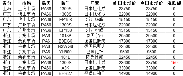 As of 16:00 on September 29, the PA market in various regions across the country remained stable with some increases. 92% of the market quotations remained stable, with the highest increase being 150 yuan. Currently, the quotation for Asahi Kasei 1300S in the Yuyao market is 23,750 yuan. Today's PA market quotation range is 9,500-33,000 yuan, with a median of 22,000 yuan.