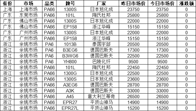[PA Quotation Summary] PA Market Mostly Stable on October 10! Most Market Quotations Unchanged