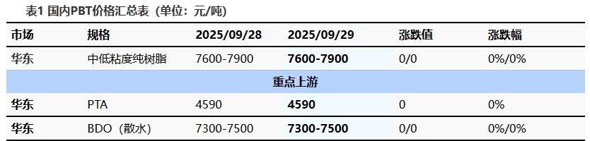 Table 1 Domestic PBT Price Summary (Unit: Yuan/Ton)