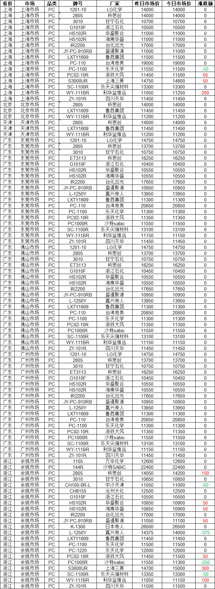 According to statistics from Zhuangsu Shijie, as of 11:00 AM on October 28, the PC market across the country is stable with some increases! 85% of the market quotes remain stable, with the highest increase of 300 yuan. Currently, the price of the Shanghai Mitsubishi S3000UR in the Yuyao market is 15,000 yuan. Today's overall market price range for PC is 10,450 to 26,500 yuan, with the market median at 11,450 yuan.