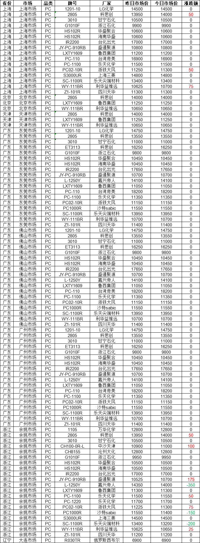 According to statistics from Zhuangsu Shijie, as of 11:00 AM on September 23, the PC market across the country is steadily rising! 88% of the market prices remain stable, with a maximum increase of 175 yuan. Currently, the price of Shengtong Juyuan JY-PC-910RB in the Yuyao market is 10,700 yuan. Today's price range for PC in the entire market is between 6,900 and 18,200 yuan, with the market median at 11,350 yuan.