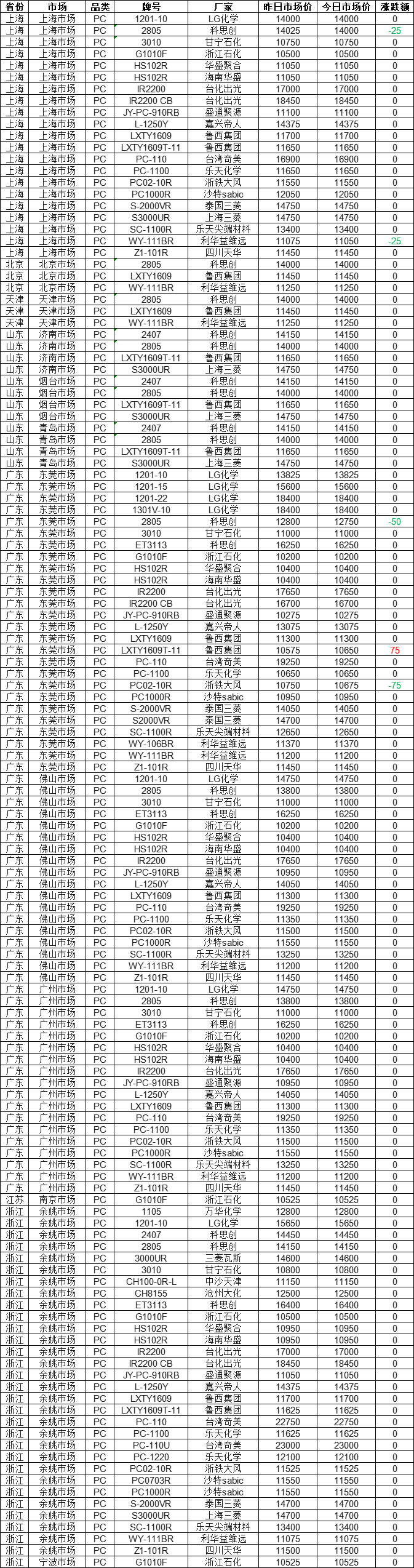 As of 4:00 PM on October 21, according to Zhusuo Vision statistics, the PC market across the country is steadily declining! 96% of the market's prices remain stable, with a maximum drop of 75 yuan. Currently, the price for ZheTie Dafeng PC02-10R in the Dongguan market is 10,675 yuan. Today's price range for the entire PC market is 10,200-23,000 yuan, with a market median of 11,650 yuan.