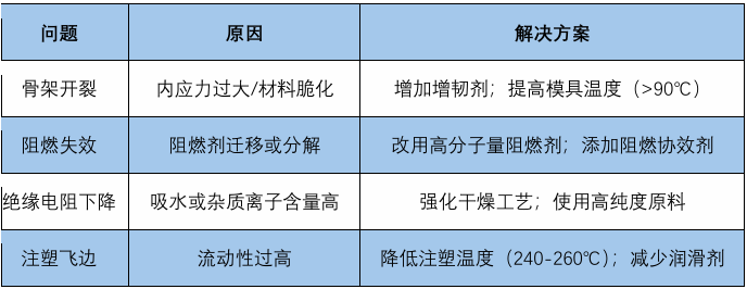 Avoid using halogen-containing flame retardants (which corrode copper wires and reduce CTI), and prefer a phosphorus-nitrogen synergistic system.