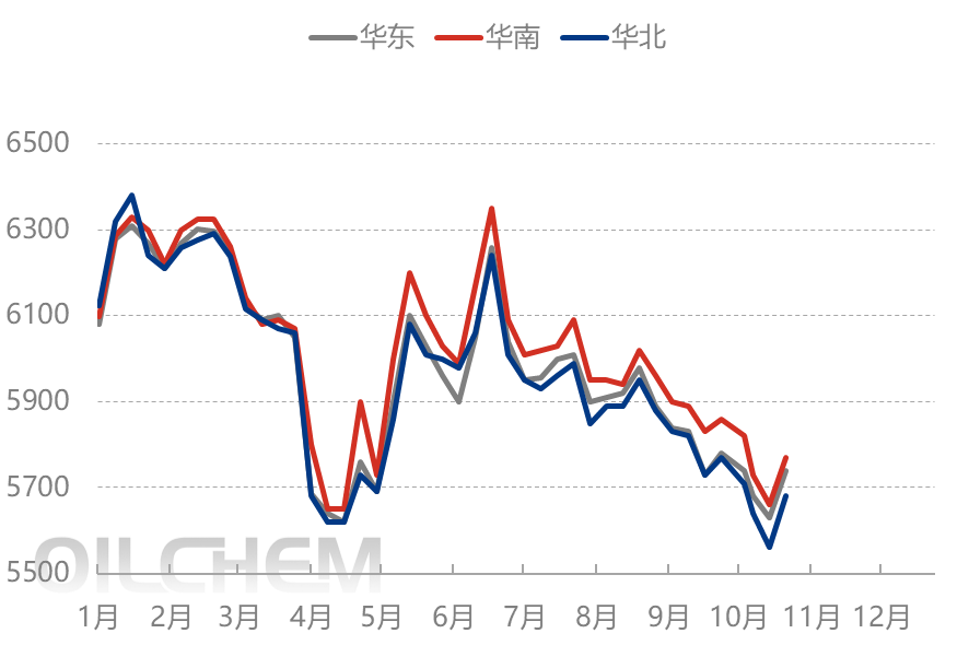 PTA Market: East China market PTA prices are organized, with negotiation reference around 4450. This week and next week, main port delivery offers are 01 at a discount of 75-80, with counter-offers at a discount of 80-82 for negotiated transactions. For mid to late November, offers are 01 at a discount of 65-70, with counter-offers at a discount of 70-75 for negotiated transactions. The sentiment in the sector is weak, with absolute prices showing a weak adjustment in the morning. The increase in supply is putting pressure on the market, and insufficient maintenance due to low processing fees is also a factor. As a result, market participants are feeling pressure, leading to limited actual negotiations. (Unit: yuan/ton)