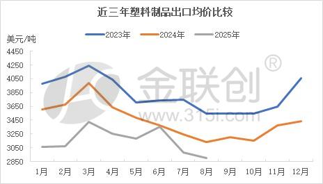 As of August 2025, the average export price of plastic products is lower than that of the same period in 2024. Moreover, the price trends over the past three years have been largely consistent, with prices rising from January to March, followed by a continuous decline from March to August.
