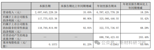 In the third quarter, the company's operating income was 2.70 billion yuan, an increase of 35.7% year-on-year; net profit attributable to shareholders was 118 million yuan, an increase of 80.8% year-on-year; net profit attributable to shareholders excluding non-recurring items was 119 million yuan, an increase of 92.8% year-on-year.