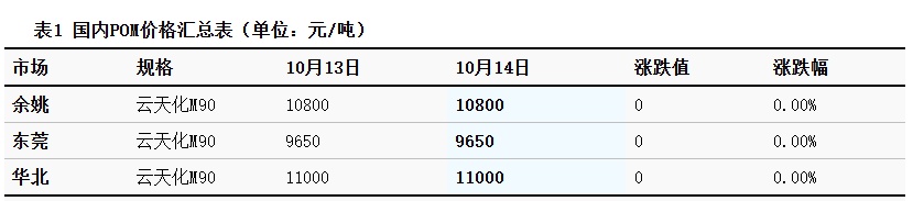 Based on the Yuyao area, today's price of Yuntianhua M90 is 10,800 yuan/ton, which is stable compared to the previous period. Today's POM market is weakly consolidating. The fundamentals are weak, market sentiment is cautious, and there are no significant fluctuations in mainstream quotations. , End-users are cautious in procurement follow-up, and buying and selling are hard to be optimistic. As of the closing, the domestic POM price in the Yuyao market is 8,100-11,100 yuan/ton including tax, and the POM cash price in the Dongguan market is 7,300-10,400 yuan/ton.