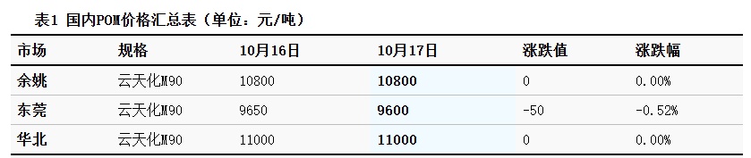 ①、 The Kaifeng Longyu POM unit was shut down for maintenance on October 9th, planned for around 20 days. 。