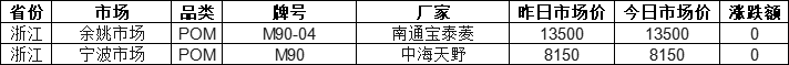 The POM price range in the market today is 8,150-13,500 yuan, with a market median of 10,825 yuan.