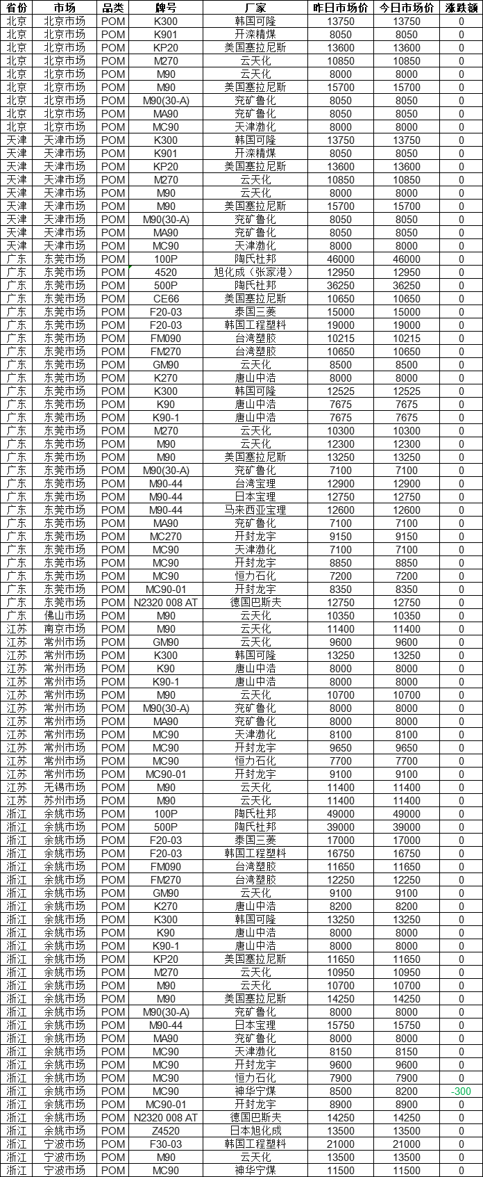 [POM Quotation Summary] October 22 POM Market Steady to Declining! Maximum Drop of 300 Yuan!