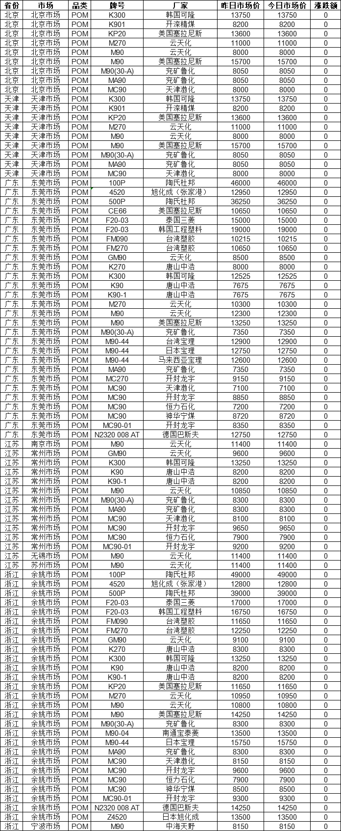 [POM Quotation Summary] POM Market Remains Stable on October 14! Most Market Quotations Unchanged