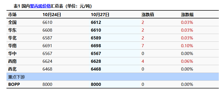 | Linyi PP Powder | 6510 | 6490 | -20 | -0.31% |