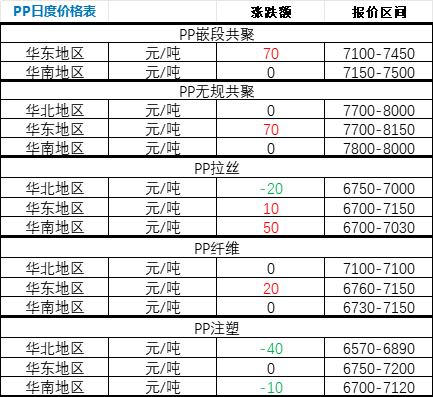 PP Prices Rise More Than Fall! September 25th National Major Region PP Price Fluctuation Overview