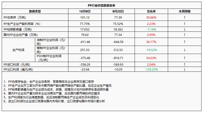 3 、 This week (20251003-1009), the average operating rate of the downstream polypropylene industry in China increased by 0.05 percentage points to 51.76%.