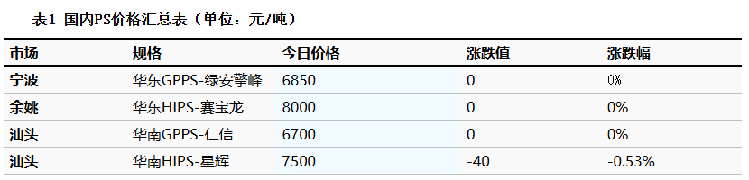 Today, the GPPS in East China is steadily priced at 6,850 RMB/ton.