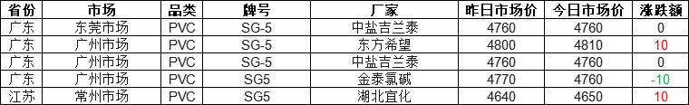 According to the statistics from Zhuan Su Shi Jie, as of 11:00 AM on October 29, the PVC market across various regions in the country is stable with an upward trend. 40% of the market prices remain stable, with the highest increase being 10 yuan. The current quote for Oriental Hope SG-5 in the Guangzhou market is 4,810 yuan. Today's PVC market price range is 4,650-4,810 yuan, with a median of 4,760 yuan.