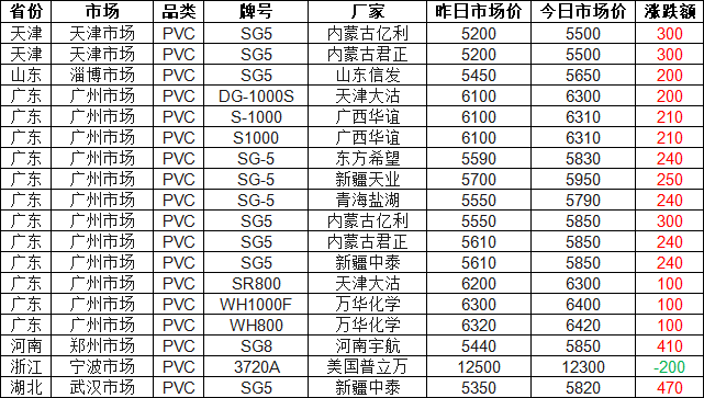 PVC Price Summary: PVC Market Mostly Rises on March 12, With General Increases of 100–470 Yuan