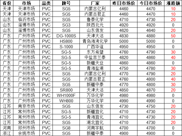 [PVC Price Summary] PVC Market Mostly Up on September 15! General Increase of 10-50 Yuan, Up to 50 Yuan at Highest!