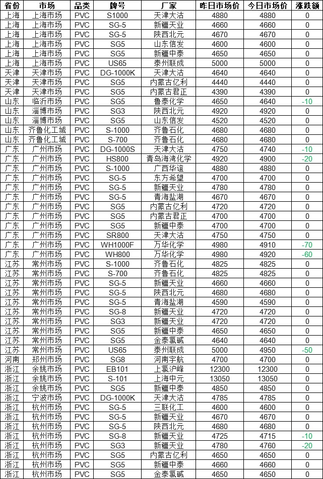 PVC Price Summary: PVC Market Steady With Decrease On October 11th! Biggest Drop Of 70 Yuan!