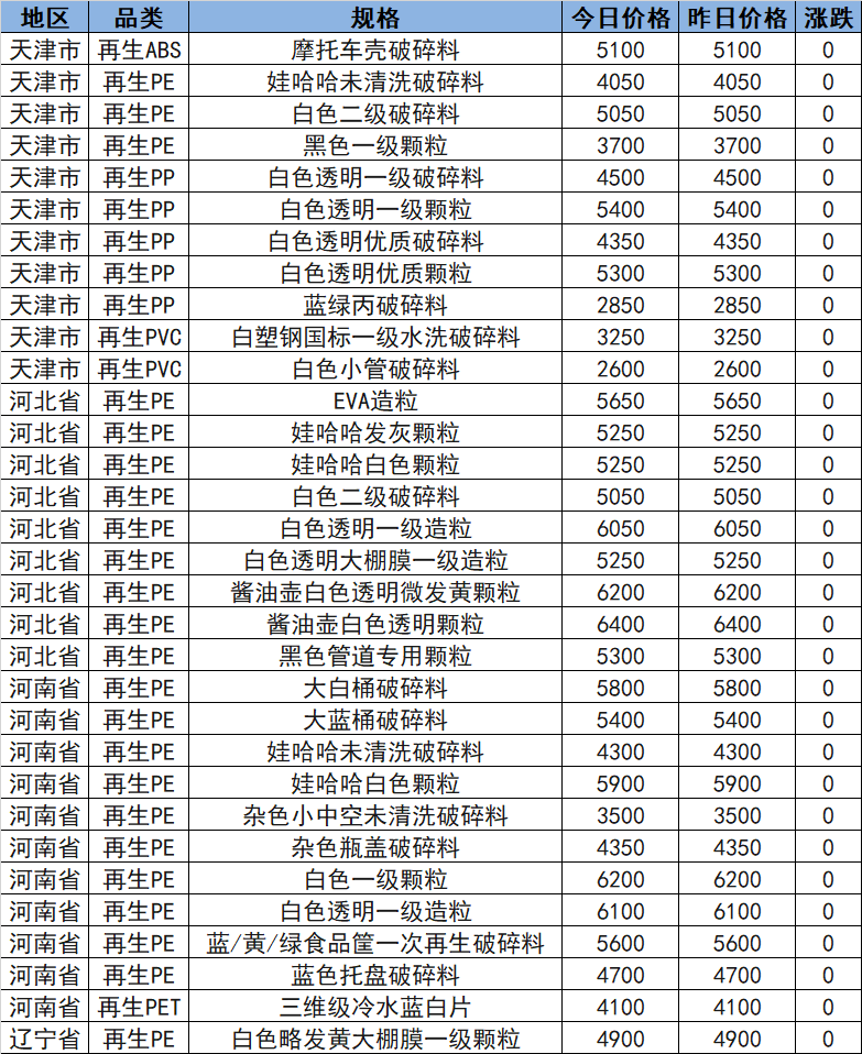 Summary: New prices for the North China recycled plastic market on the morning of October 28th! The North China recycled market is operating steadily, with recycled PP in Tianjin priced at 2850-5400; recycled PE in Hebei priced at 5050-6400; recycled PET in Henan priced at 4100; recycled PE in Liaoning priced at 4900. The downstream purchasing pace in the market is slow, and some holders are lowering their offers to facilitate transactions. Meanwhile, the supply side remains tight, keeping prices firm. Amid this industry chain contention, short-term prices for recycled pellets continue to operate steadily.