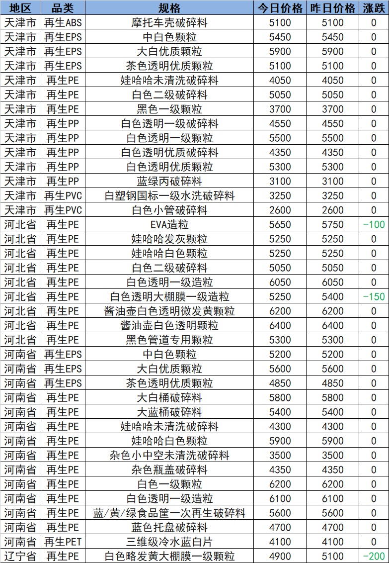 Recycled Material Market Prices: North China Recycled Market Partially Drops 100-200, Liaoning Recycled PE Reports 4900
