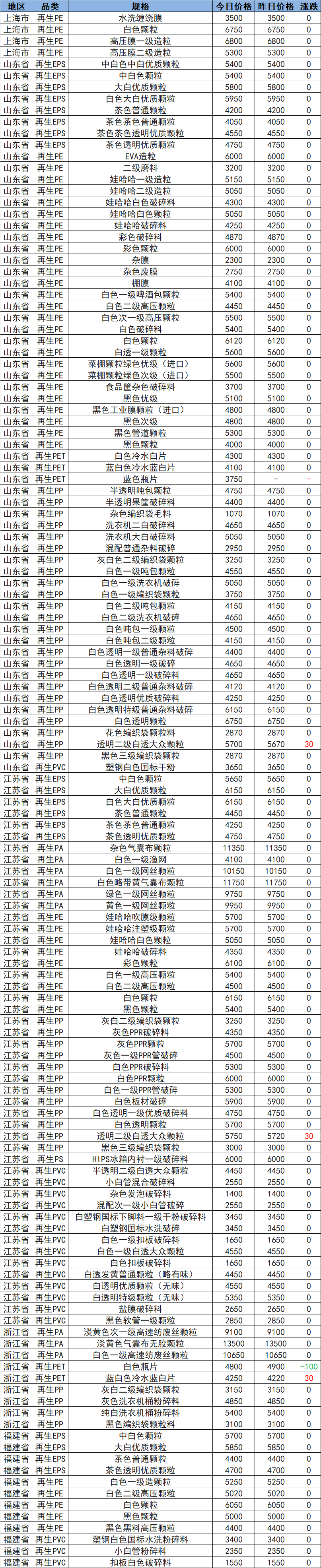 Recycled Material Market Prices Steady in East China With Minor Fluctuations of 30–100