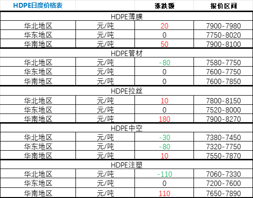 Regional Market Prices: HDPE Mostly Up With Some Declines! Overview of HDPE Price Changes in Major Regions Across China on September 15