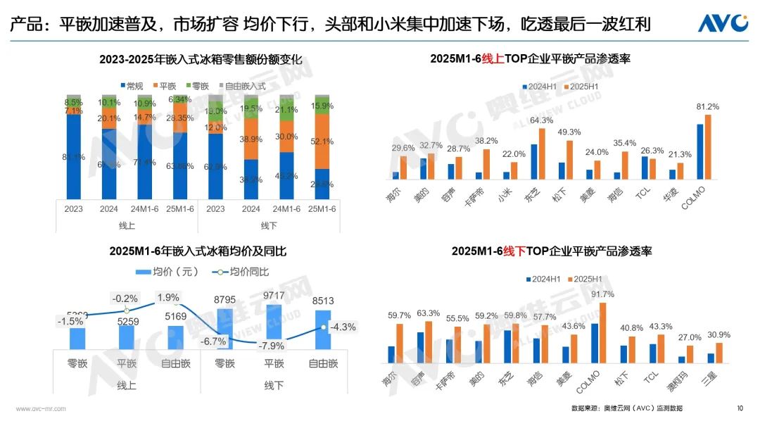 From the perspective of brand penetration, in the first half of 2025, industry players have increased their investment in the flat embedded category. High-end brands focus on technology premium to consolidate their market share in flat embedded products, while new players like Xiaomi are entering the market with cost-effectiveness, intensifying competition in the mid-range. The penetration rate of flat embedded products across various brands is rapidly increasing.