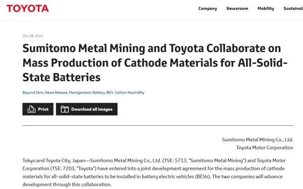 Toyota announced at the beginning of this month that it will launch all-solid-state batteries in 2027-2028.