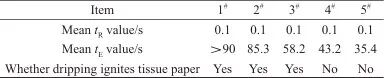Notes:tR denotes ignition time of specimen after glow-wire application,while tE represents total flaming duration after ignition.