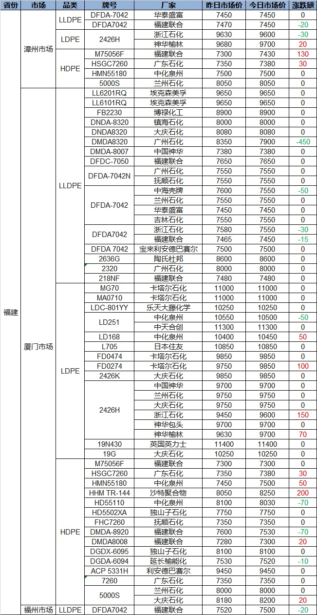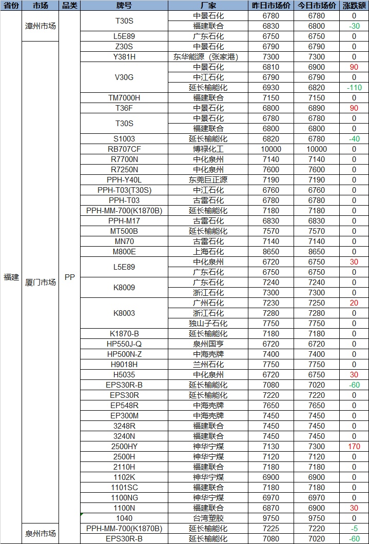 Today PP and PE Fujian Plastic Prices Show Mixed Trends! PP Rises Up to 170, PE Falls Up to 450