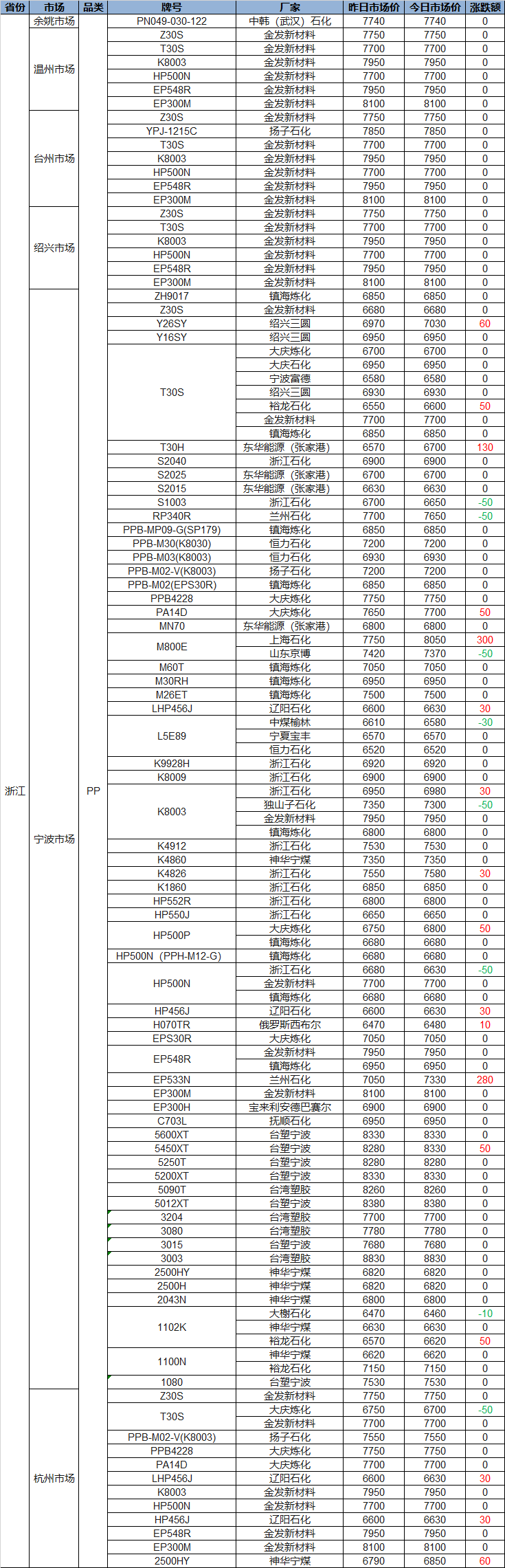 Today PP and PE Zhejiang Plastic Prices: Most Rise 30-280, PE Highest Up 500