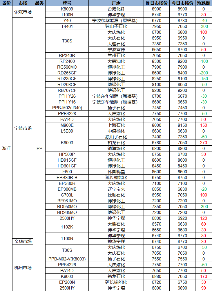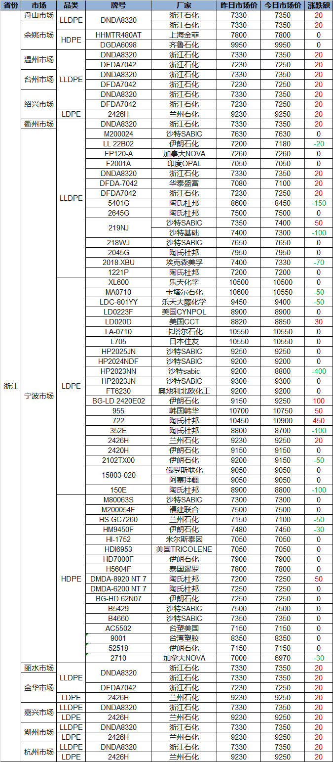 Today PP, PE Zhejiang Plastic Prices Vary! PE Rises Up to 450, PP Drops Up to 300