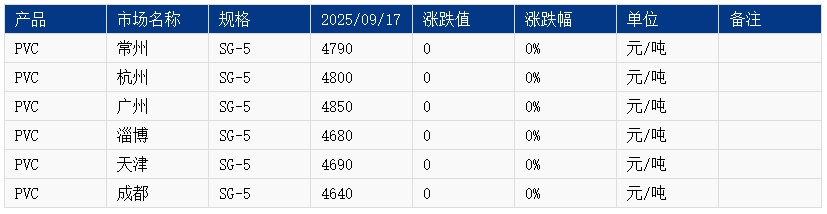 The domestic PVC spot market has stabilized after fluctuations, with most transactions conducted at fixed prices. The futures prices are fluctuating weakly within a range. Both supply and demand fundamentals are weak, and end-user purchasing enthusiasm is lacking. In East China, the ex-warehouse cash price for carbide-based Type 5 PVC is 4720-4800 yuan/ton, while the ethylene-based price is 4850-5100 yuan/ton.