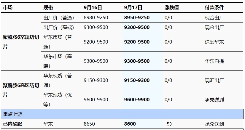 PA6: Downstream replenishes inventory on dips as needed; PA6 market operates steadily.