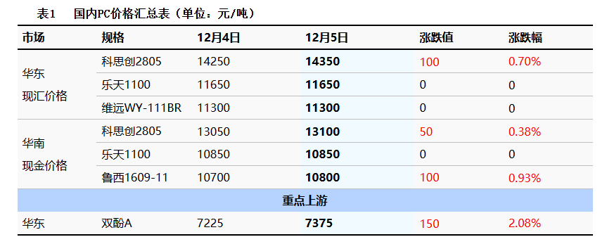 PC: East China mainly consolidates, South China operates with firm price increases.