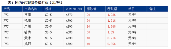① Domestic PVC producers raised prices by RMB 40–100 per ton.
