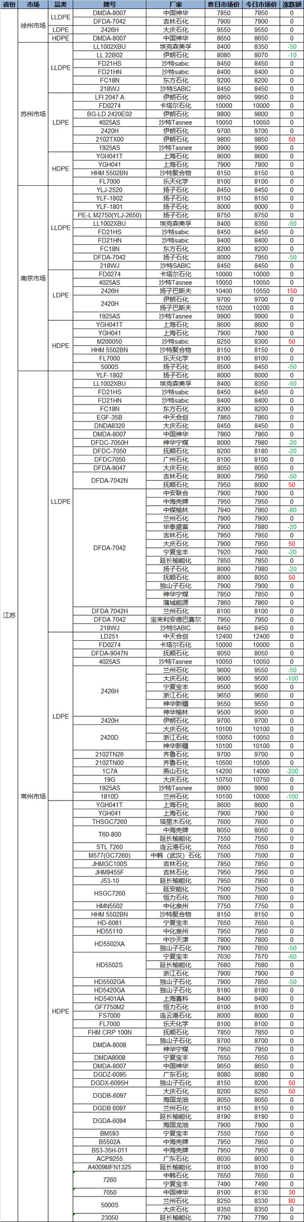 Today's PP and PE prices in Jiangsu show slight fluctuations with a narrow adjustment! PP and PE have increased by up to 150.