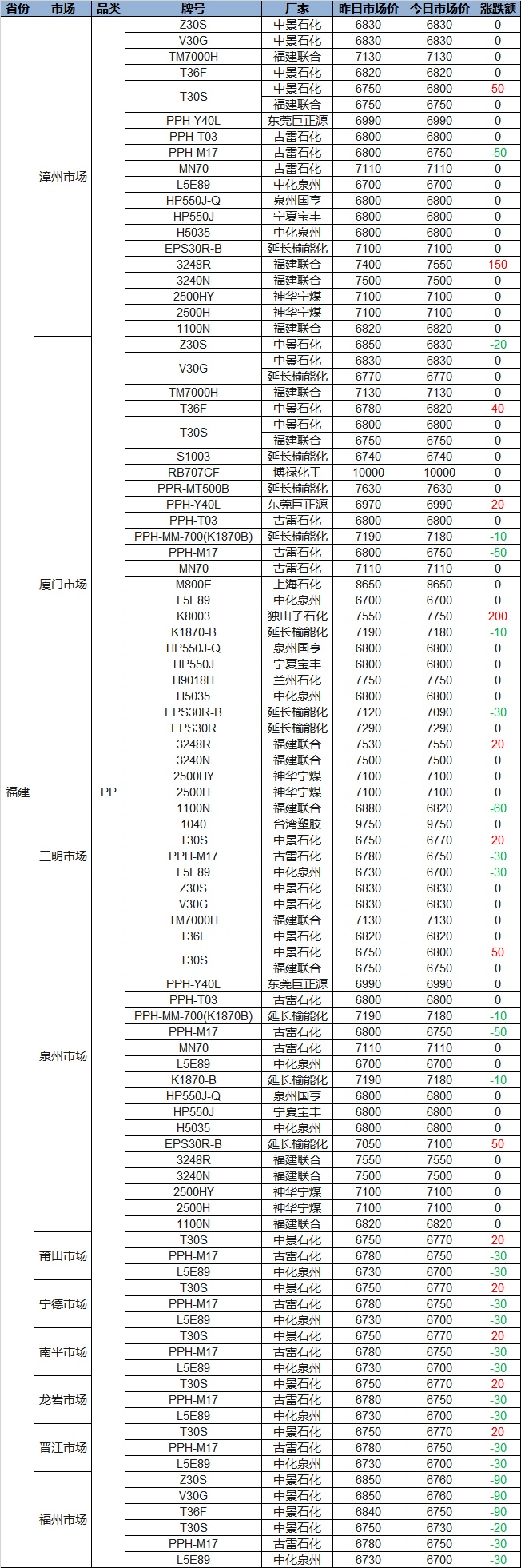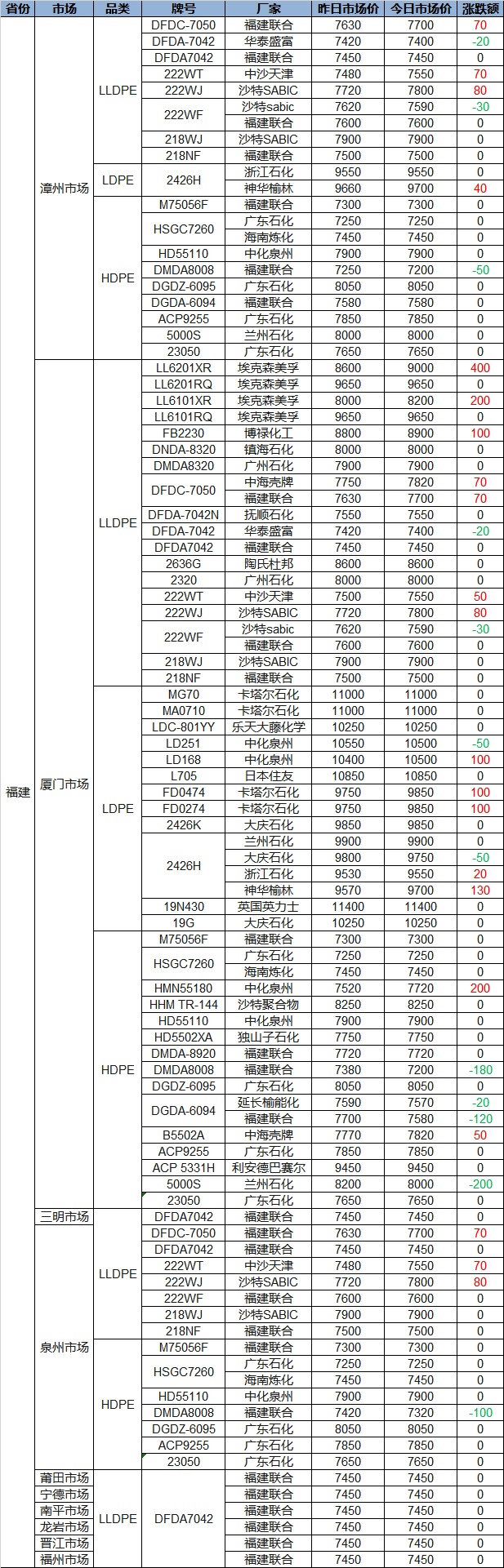 [Today's PP, PE Fujian Plastic Prices] Mixed Changes: PE Fluctuates by 20-200, PP Up to 200