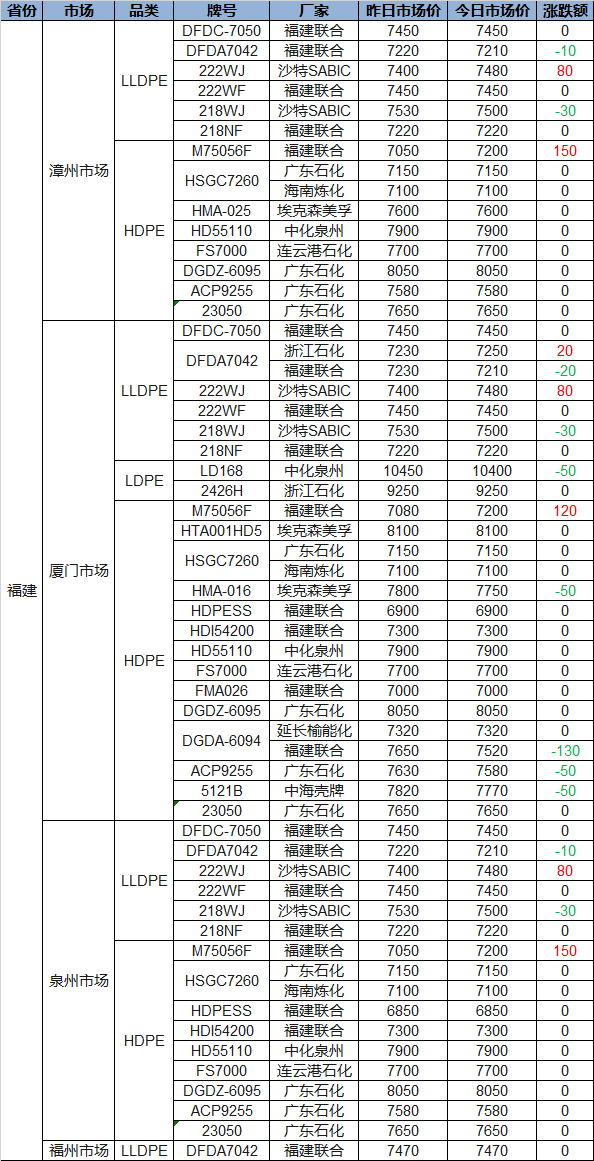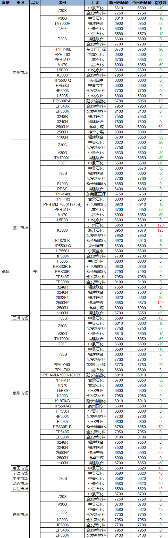 [Today's PP, PE Fujian Plastic Prices] Partial Narrow Adjustment! PP Up/Down 10-190, PE Up/Down 10-150