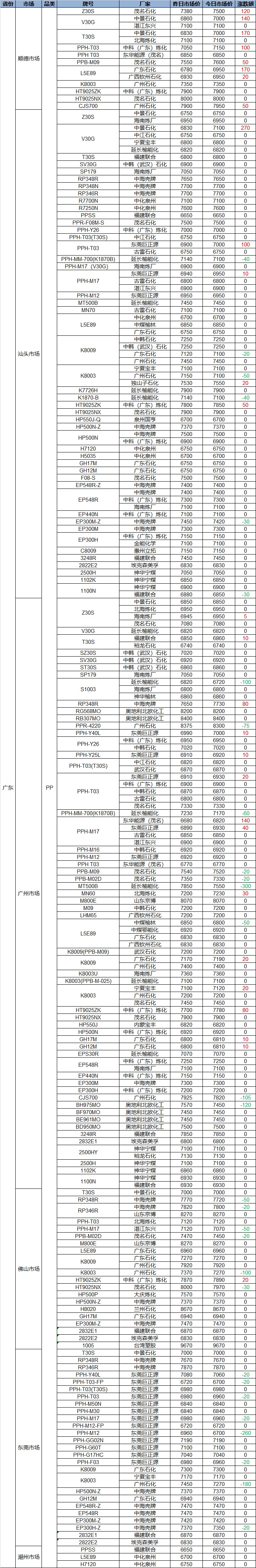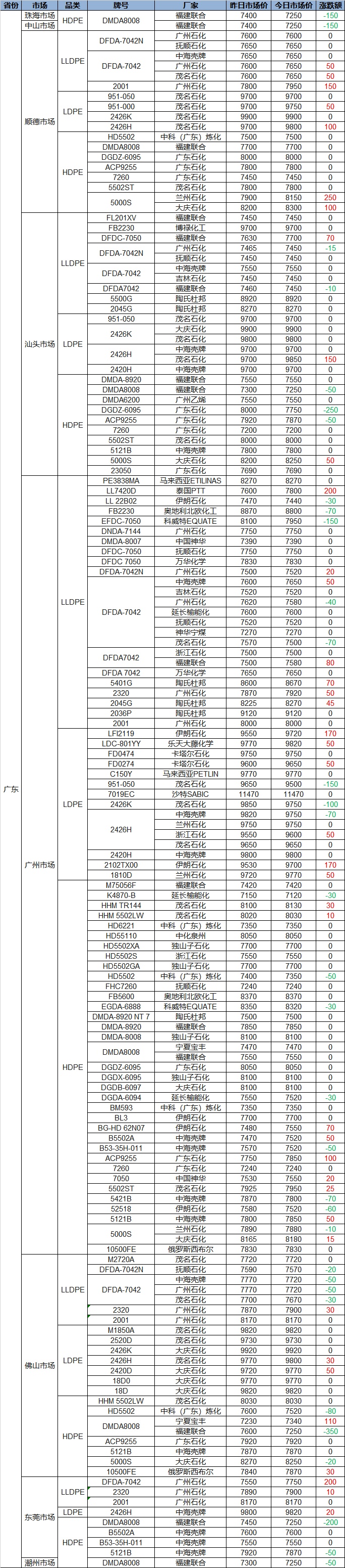 [Today's PP, PE Guangdong Plastic Prices] PE Rises and Falls Seen, Mostly Up or Down by 20-150! PP Drops Up to 300