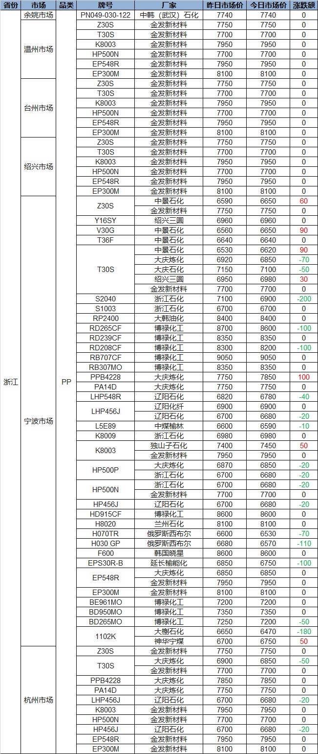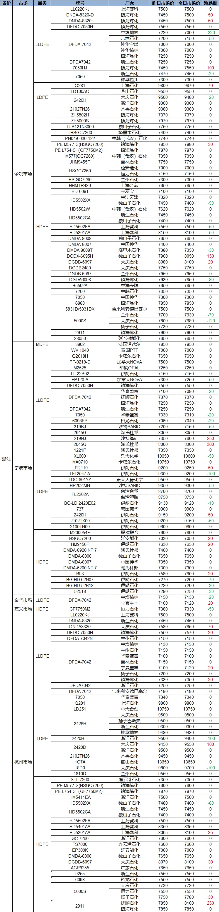[Today's PP, PE Zhejiang Plastic Prices] Fluctuate! PP Drops by up to 200, PE Rises by up to 300