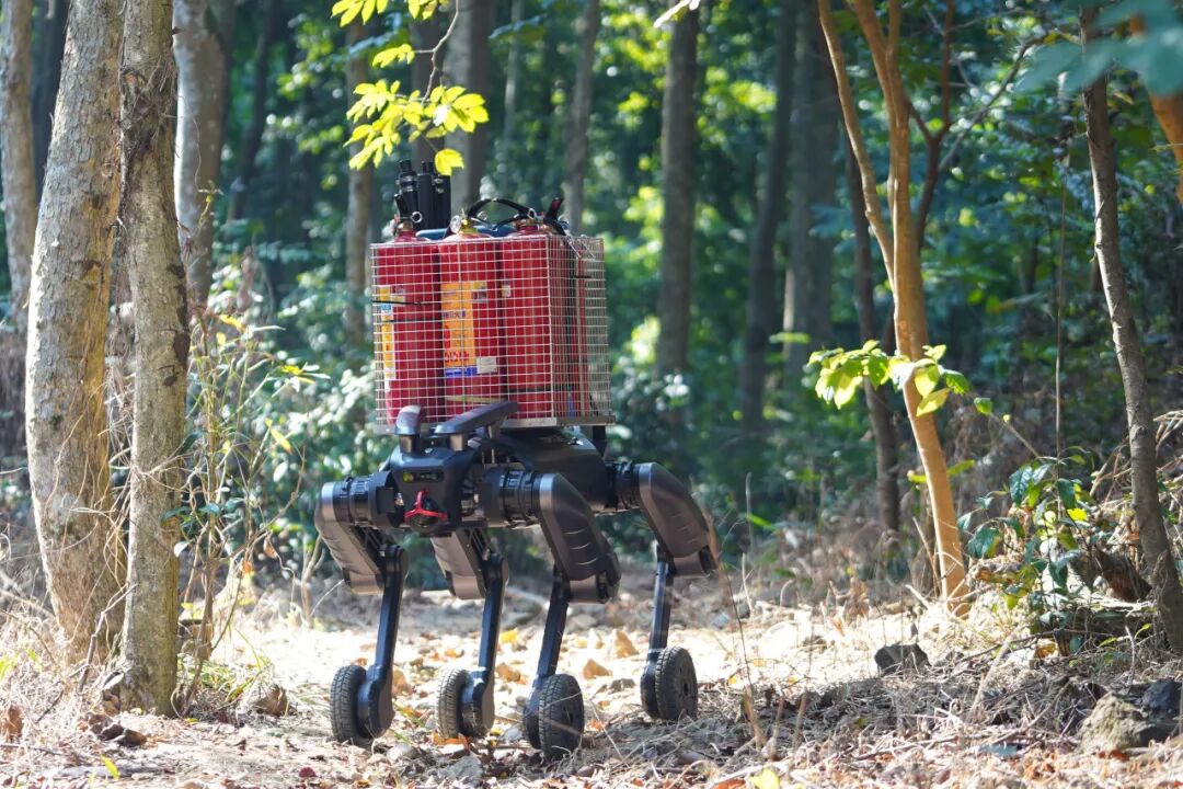 Forest fire fighting scene Addressing the pain points of forest firefighting, namely "difficult reconnaissance, difficult approach, and high risk," "Xingzai" can achieve initial lightning-induced fire identification, fire point positioning, and data transmission. It can also coordinate with drones for initial response and replace manual carrying of firefighting equipment, enabling access to high-temperature smoke and other areas difficult for humans to reach. This reduces safety risks for frontline personnel and provides intelligent support for forest patrol and emergency response.
