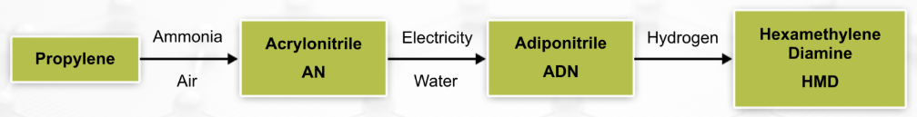 In Ascend's product value chain, acrylonitrile (AN) —> adiponitrile (ADN) —> hexamethylene diamine (HMD) is a particularly critical component.