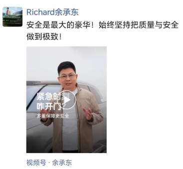 Yu Chengdong Emphasizes Car Door Lock Safety in WeChat Post: How to Open the Door in Emergencies, HarmonyOS Intelligent Vehicle Door Lock Features Four Layers of Safety Design