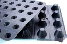 **Application of Roll Drainage Board** Landscaping projects: Green roofing for garage tops, rooftop gardens, football fields, golf courses, and bathing facilities; Municipal projects: Roadbed, subway tunnels; Construction projects: Upper or lower layers on building foundations, exterior and interior walls of basements, roof waterproofing, and thermal insulation layers; Traffic projects: Highway, railway embankments, dikes, and slope protection layers. **Installation Guidelines for Roll Drainage Board** 1. Clear the site of debris, level the cement, and ensure there are no obvious bumps or depressions. The outdoor garage top and rooftop garden should have a slope of 2-5‰; 2. Rooftop greening and outdoor garage top greening can be used with perforated drainage pipes, which can concentrate the water discharged from the drainage board to nearby sewage pipes or municipal sewage systems; 3. For waterproofing the basement floor, a drainage board should be installed above the foundation, with the rounded side facing down, leaving blind ditches around to prevent groundwater from rising. The seepage water naturally flows through the drainage board into the surrounding blind ditches and then into the collection pit; 4. For waterproofing the interior walls of the basement, a drainage board can be laid on the main wall of the building, with the rounded side facing the main wall. A layer of single-wall bricks or a cement mesh can be added outside the drainage board to protect it, allowing water from the outer waterproofing board to flow directly down into the blind ditch leading to the collection pit; 5. When installing the drainage board in any area, it is essential to prevent soil, cement, yellow sand, and other debris from entering the front space of the drainage board to ensure its drainage space remains unobstructed; 6. When laying the drainage board, protective measures should be taken to prevent disruption from strong winds, especially when backfilling soil on the layered or outdoor garage top. The waterproofing for basements and interior walls should be promptly protected to prevent damage to the drainage board; 7. The backfill soil should be clay. A layer of 3-5 cm of yellow sand is ideal on top of the geotextile to aid in water filtration. If the backfill soil is nutrient-rich or lightweight soil, there is no need for an additional layer of yellow sand, as this type of soil is already loose and allows for easy filtration. When laying the drainage board, edges should overlap by 1-2 support points, or two pieces can meet at the edges, with the geotextile overlapping on top, ensuring no soil enters the drainage channels to maintain smooth drainage. **Construction Plan for Drainage Board on Basement Floor:** 1. The construction walls must be solid, flat, and smooth, without looseness, sandiness, protrusions, or pits; 2. According to the design, a slope of 1‰ should be established, with the drainage board turned up at the base of columns and corners; 3. Fill the gaps at the support points of the drainage board with concrete, raising it by 1-2 cm; 4. After the concrete sets, tie the rebar and pour the concrete surface layer, designing drainage ditches and collection wells in the base slab; 5. Fully loaded concrete trucks should not drive directly on the drainage board; wooden planks can be laid down to create a pathway to prevent damage to the drainage board.