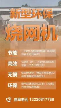 This is a new type of environmental protection burner. Its working principle is based on slow fire reverse combustion. It truly achieves high efficiency, energy savings, and meets environmental standards. Compared to other products, it effectively demonstrates its superiority. The hard truth is that it saves effort, labor, and money. In terms of energy saving, it consumes 4-5 kWh per hour. One batch can process around 1200-1400 pieces, which takes about 4 hours to complete. The burn time is faster than other products, and it does not damage the mesh, extending its reusable lifespan. Environmentally, it achieves over 95% in smoke odor treatment. For more details, please contact me for detailed video materials.