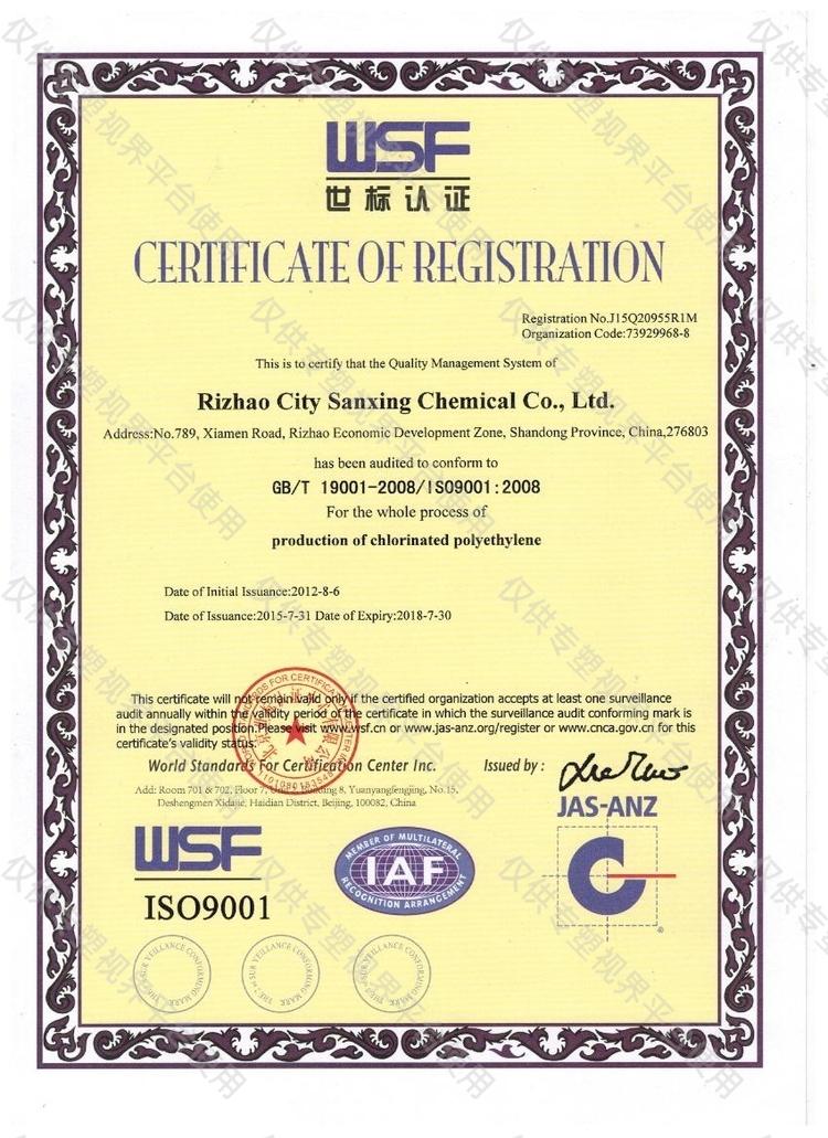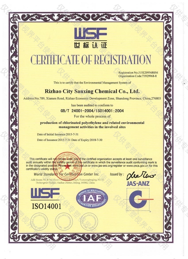 Rizhao Sanxing Chemical Co., Ltd. is the successor of Linqu Sanxing Chemical Co., Ltd., which was established in 1989. It is a professional manufacturer of chlorinated polyethylene (CPE) with over a decade of production experience. The current annual production capacity is 30,000 tons. The company has the right to import and export, and its products are sold to more than ten countries including the United States, Germany, France, New Zealand, South Korea, Malaysia, Vietnam, Indonesia, Turkey, and Thailand, as well as over twenty cities within China. It is one of the backbone enterprises for CPE production in China. Since its establishment, the company has adhered to the principle of promoting chemical technology through science and prioritizing quality. While rapidly developing, the company strictly controls product quality, widely hires high-tech talents, purchases advanced international equipment and control devices, and has established a complete production control system and an accurate quality inspection system. A modern management system focusing on site management, with quality management at its core, and based on standardized management has been formed. With high-quality products, thoughtful services, and moderate prices, the company has gained recognition from a wide range of customers. Since 1991, it has been continuously designated as a CPE export supplier by Sinochem Import Group for over a decade. In addition to producing and selling CPE, the company also deals in various plastic additives. Meanwhile, Rizhao Bafang Paper Co., Ltd., a subsidiary controlled by the company, has successfully passed the acceptance inspection and commenced production.