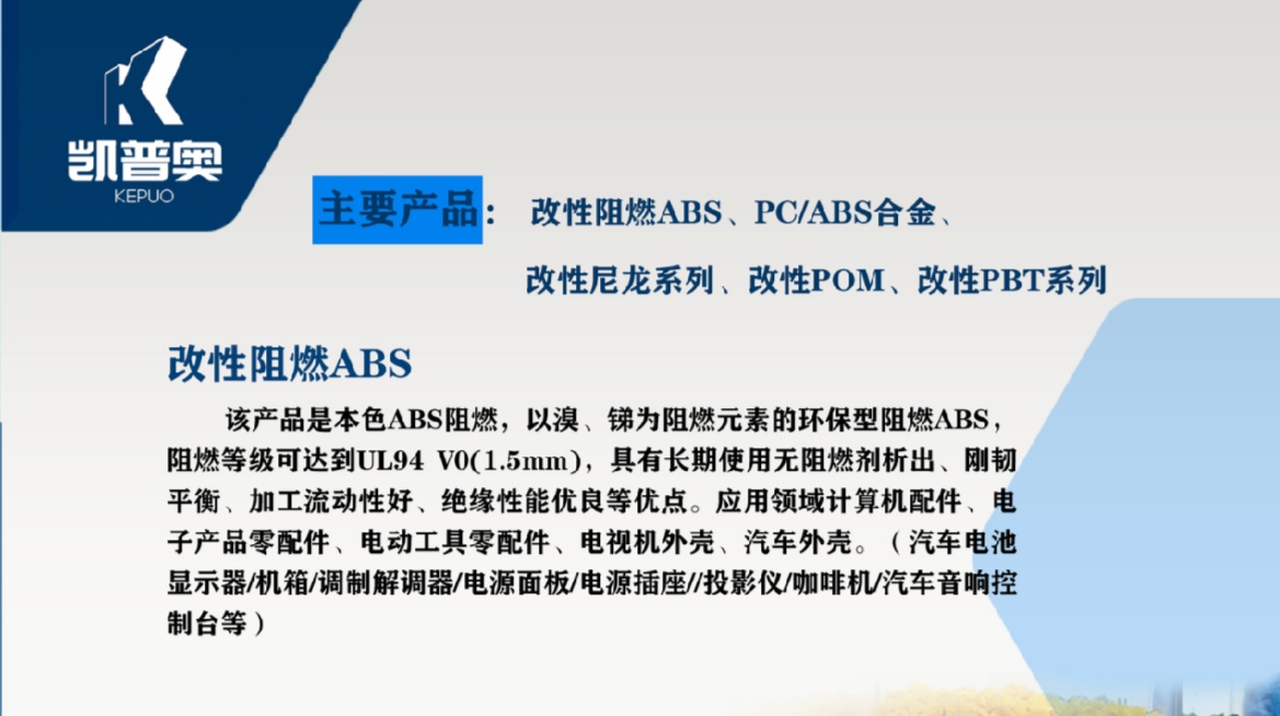 Main products: The factory produces: modified flame-retardant ABS, PC/ABS alloy, modified nylon series, modified POM, modified PBT series. The trading department acts as an agent and distributor for brands such as DuPont from the USA, BASF and Covestro from Germany, Polyplastics and Asahi Kasei from Japan, Mitsubishi, and Korea Engineering Plastics.